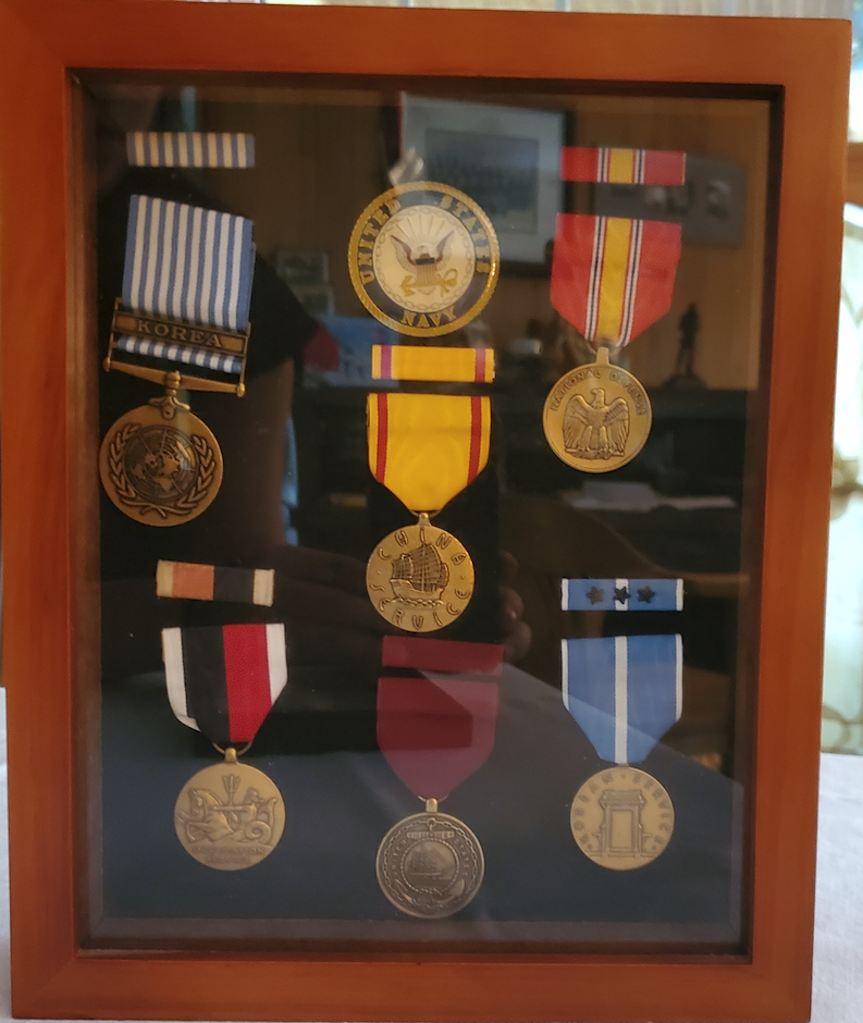 한국전 참전 당시의 상황을 이야기 해 주셨습니다. 선박의 수리를 위해 미국 본토로 귀항했고 정박기간 동안 기혼 병사들은 휴가를 가고 미혼들은 승선 대기중이었다고 합니다. 이 때 한국전쟁 발발 소식을 들었고 즉시 휴가갔던 군인들을 소집 바로 남태평양으로 복귀했다 합니다. 그리고 인천 상륙작전에 투입되셨다고 합니다. 할아버지는 함포사격 통제관으로 지상군 투입을 위해 월미도에 사흘 동안 함포사격을 계속 했었는데 인천상륙작전의 포문을 최초로 열었던 배가 할아버지가 타고 계셨던 배였다고 합니다. 할아버지는 전쟁이 끝날 때 까지 극동군에 배치되어 근무하셨습니다.